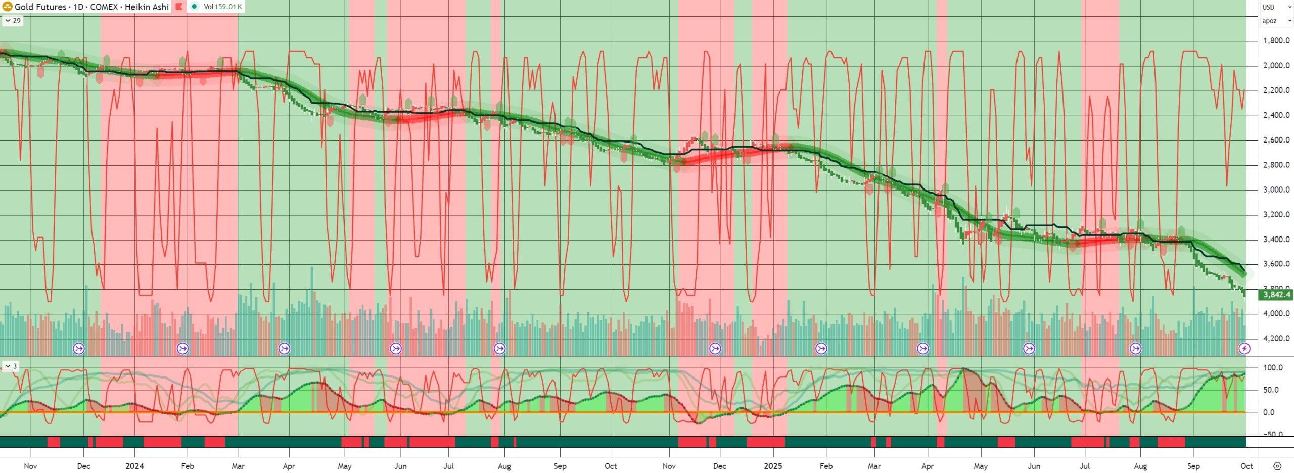 「金(ゴールド)」はまだまだ上がるという専門家は多い。でも上の金(ゴールド)チャートを見ても「バブル」にしか見えない。少なくとも「高値圏」なのは間違いがなくて、ここから「買い上がる」のはかなりの精神的ストレスと戦わないと無理ですよね。