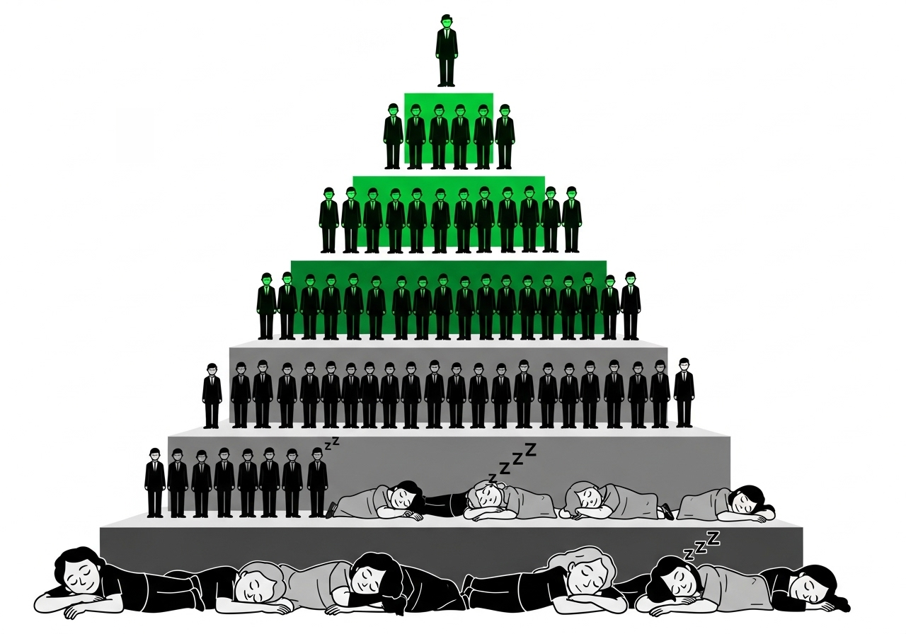 私には日本の経済の世界ってこんなピラミッド世界に見えるんですよ。