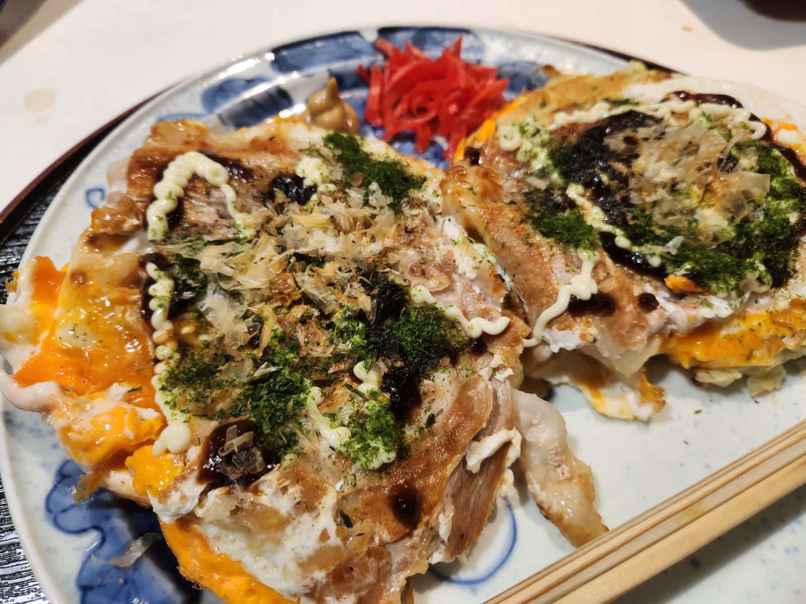 「海鮮お好み焼き」で、中身のどこを探しても「海鮮は入っていない」のだけれど(笑)、間違いなく【海鮮風味】はあって美味しい。