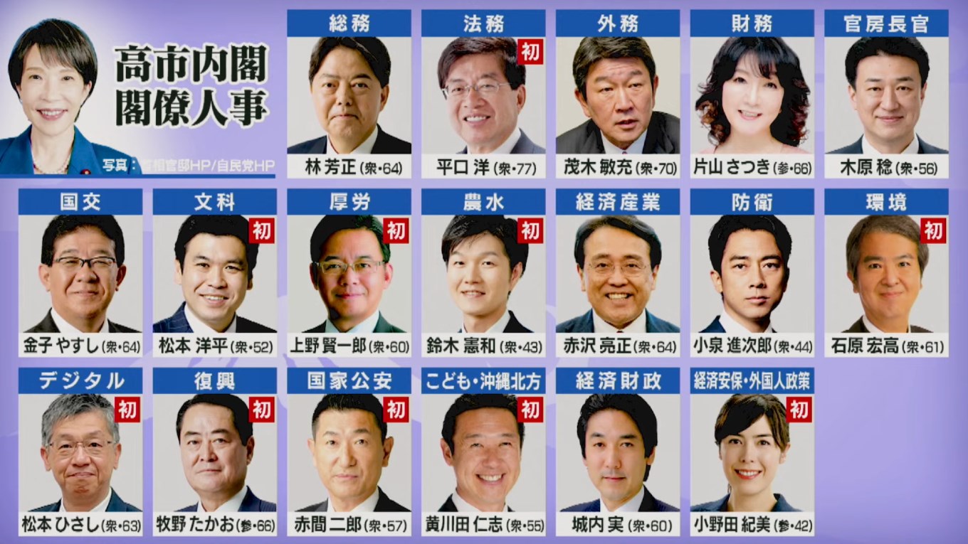 小泉ジュニアが防衛大臣ってのが良くわからないけれど、「観察対象」ってことなのかと思ったり。やっぱり無視はできないだろうし。そういう意味じゃ「林芳正総務大臣」てのも気に入らないけれど、「実務ができる人」という意味では適任なのかもしれないと思ったり。面白いのは赤沢亮正経済産業大臣で、「お前、アメリカとのことは責任取れよ」みたいに見える。(笑)