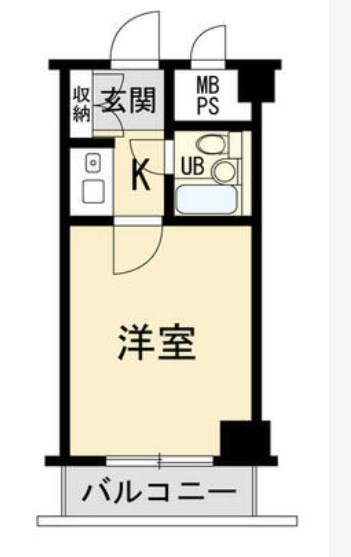 こんな部屋。ベッドとテレビとタンスを置いたらそれで満杯。