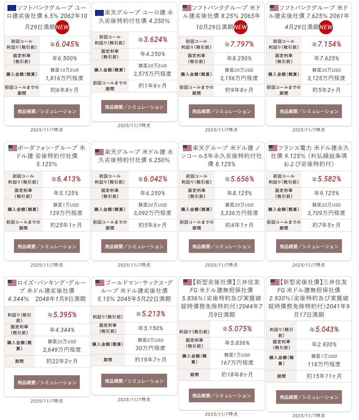 2025年11月7日時点ではこんな感じ。(この社債は既発の劣後債なのに注意)(画像をクリックすると大きく表示します)(このデータはこの証券会社から。私は取引していませんが)