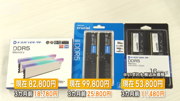 大型のデータセンターを建設する話でAI業界は盛り上がっていますが、AI用のメモリとパソコンのメモリは違うけれど、メーカーは生産ラインをAI向けに切り替えていて、大手三社の一つのマイクロンが「民生用のメモリの生産を中止する」と最近、聞いたような気がする。