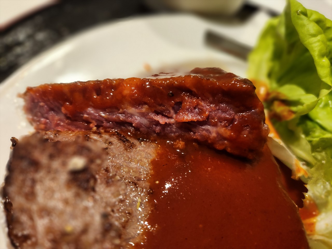 中は、この写真ではわかりずらいけれど、「真っ赤っ赤のレア(ブルーと言うべきか)」で、温度としては「常温」。