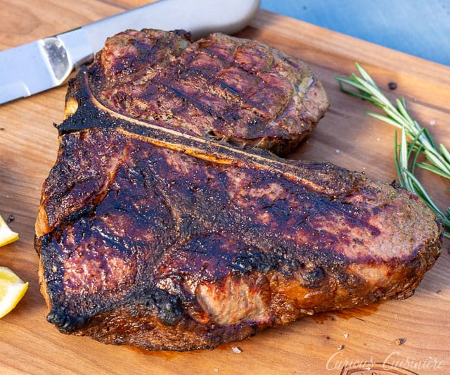 私もその手のポーターハウス(Tボーン)を食べてみたいのだけれど、「分厚い肉を手に入れるのが難しい」から食べたことがない。普通、売っているポーターハウス(Tボーン)って下手すりゃ1~2センチの厚さしか無いから、しっかり焼き目をつけると「中はミディアム」みたいになって私にすると「焼き過ぎ」になってしまう。