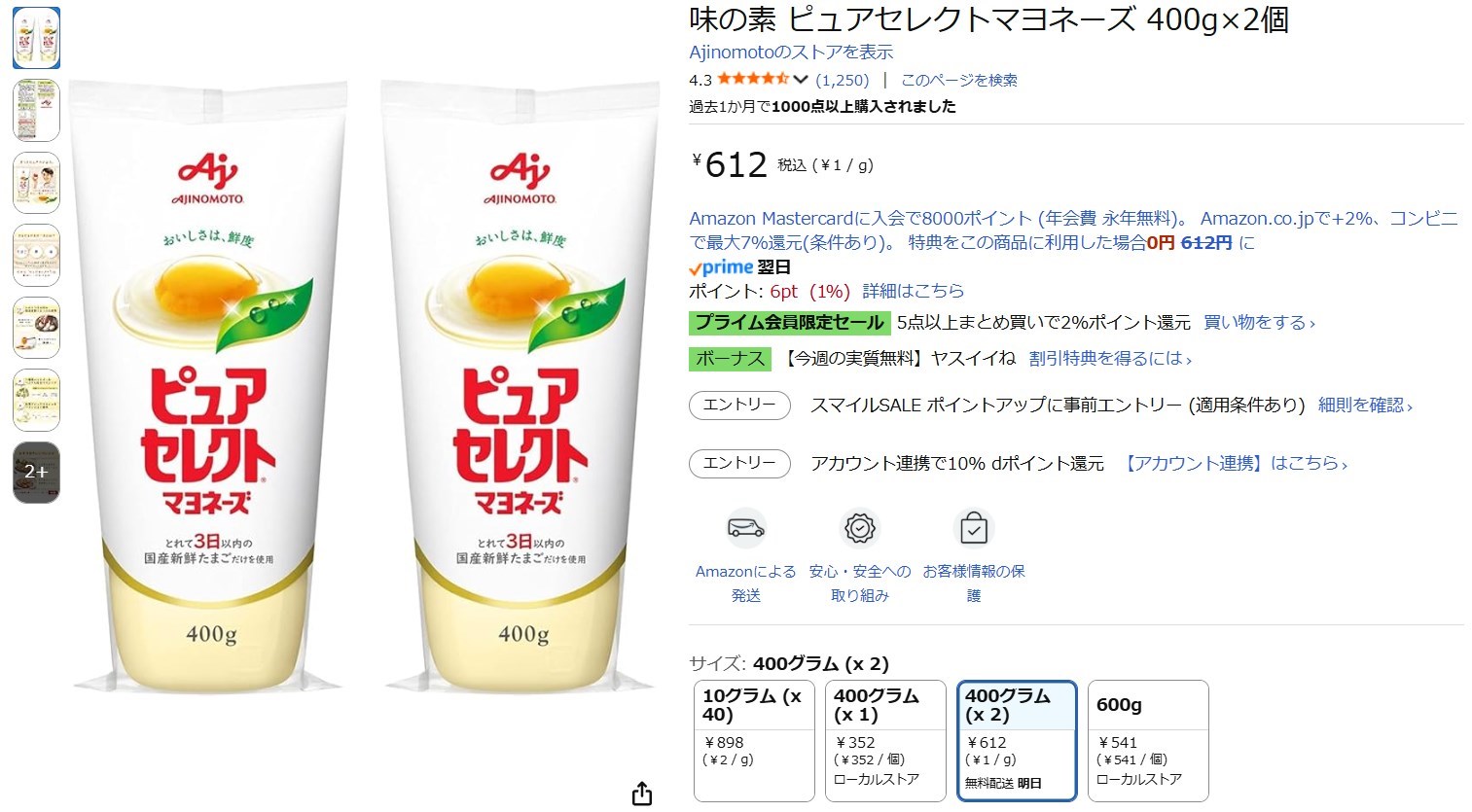 息子のピュアセレクト愛は本当に愛で、「マイマヨネーズ」として一つは占有したいというぐらい。だから「息子のため」というのを言い訳にして買おうと思ったり。