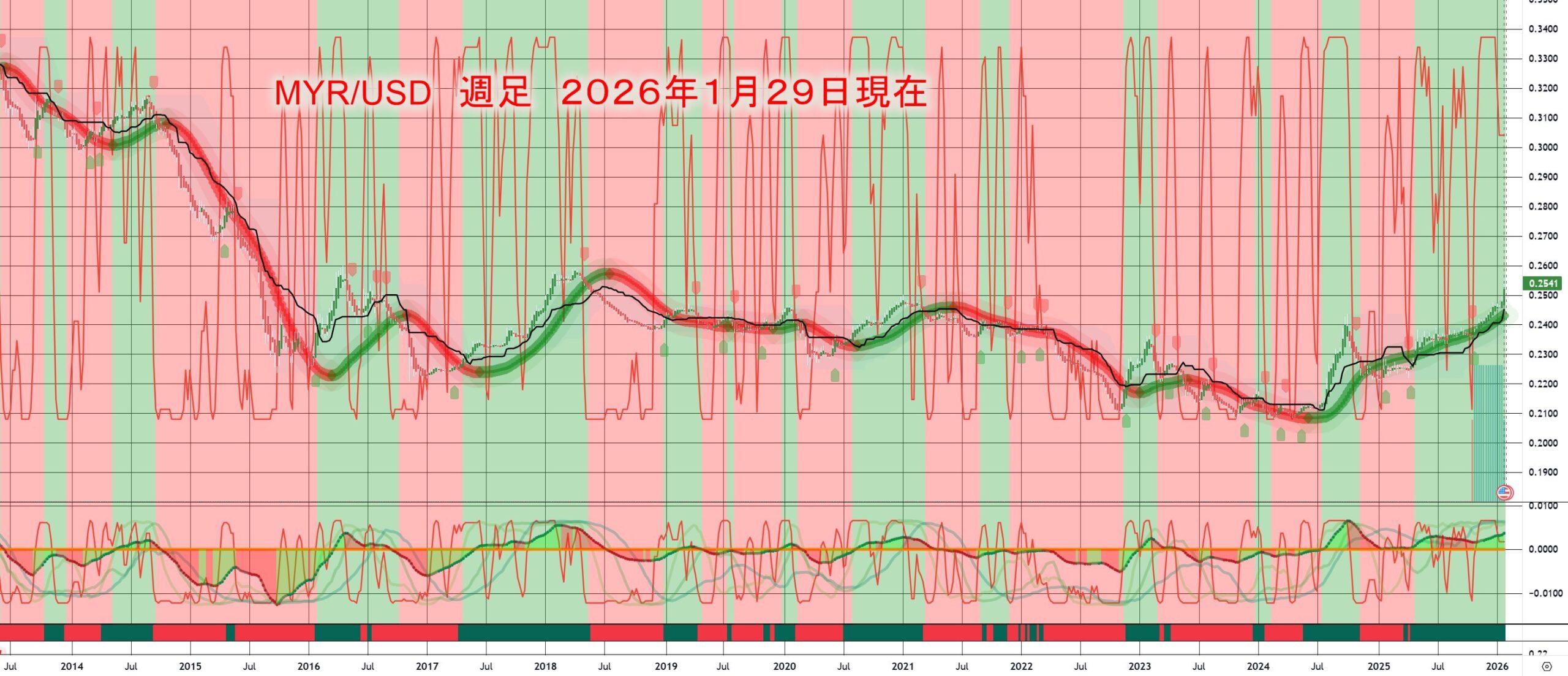 私の主要通貨は「米ドル」で、こんなチャートを見ながら「必要なリンギットを買うタイミングや量を調節する」ことしか出来ません。
