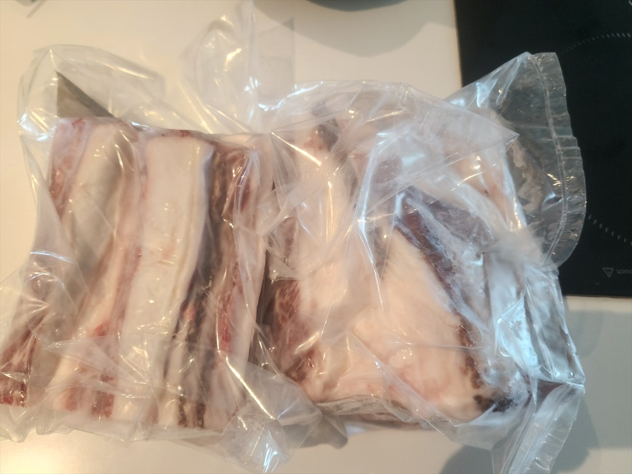 下の写真は「B2 Short rib 3kg」を二分割してもらったもので、いわゆる「骨付きカルビ」の部位。ただ骨付きのまま輸入できないので「骨無しカルビ」(笑)。等級は「B2」というサシも少ない肉ですが、そもそも「脂身が多い部位」ですし、私は「煮込み用」に使いたかったので「B2」だからこそ良いと思っています。オーストラリア牛、アルゼンチン牛の「ショートリブ」はどこでも売っていますが、私は「和牛のショートリブ」は初めてですので期待しています。