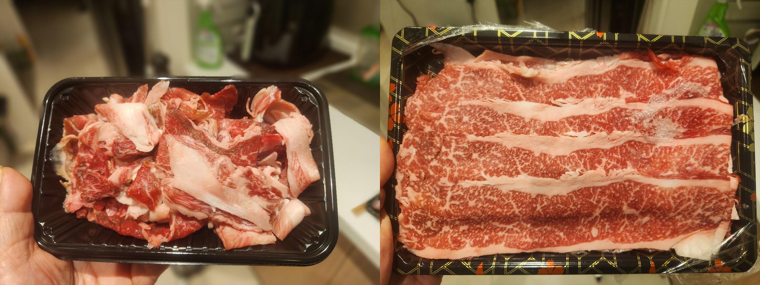 新たな販売店から買った「しゃぶしゃぶ肉」ですが、これも味見をしてみましたが、マレーシアでは珍しい「薄さはばっちりしゃぶしゃぶの薄さ」で、味はまぁまぁ、和牛じゃなくてF1ハイブリッド(交雑牛)ですが、及第点だと思います。前にQraから買った「アルゼンチン産穀物飼育牛サーロインしゃぶしゃぶ肉」と【価格は同じ】ですが、こちらのほうが美味しい。でも見た感じはサシが多いわけでもないのに「かなり脂っこい」感じでした。これはキロ単価RM180で約7000円。グラム700円ってことですが、まぁ、これで文句を言ってはならないんだろうと思いました。でも以前のWmartで買った上のしゃぶしゃぶ肉のほうが満足感があった。