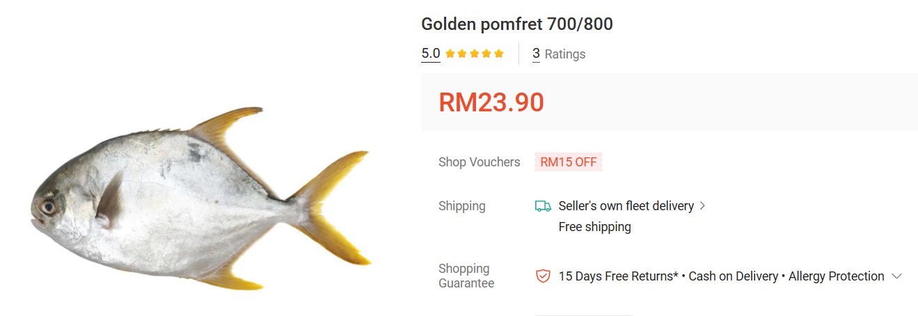 私が好きなのは「Golden Pomfret」で、見た目は「マナガツオ」に似ているけれど、「マルコバン」というアジ科の魚。これはコスト的にも良いと思う。これはマレーシアで養殖されていてどこでも売っている。