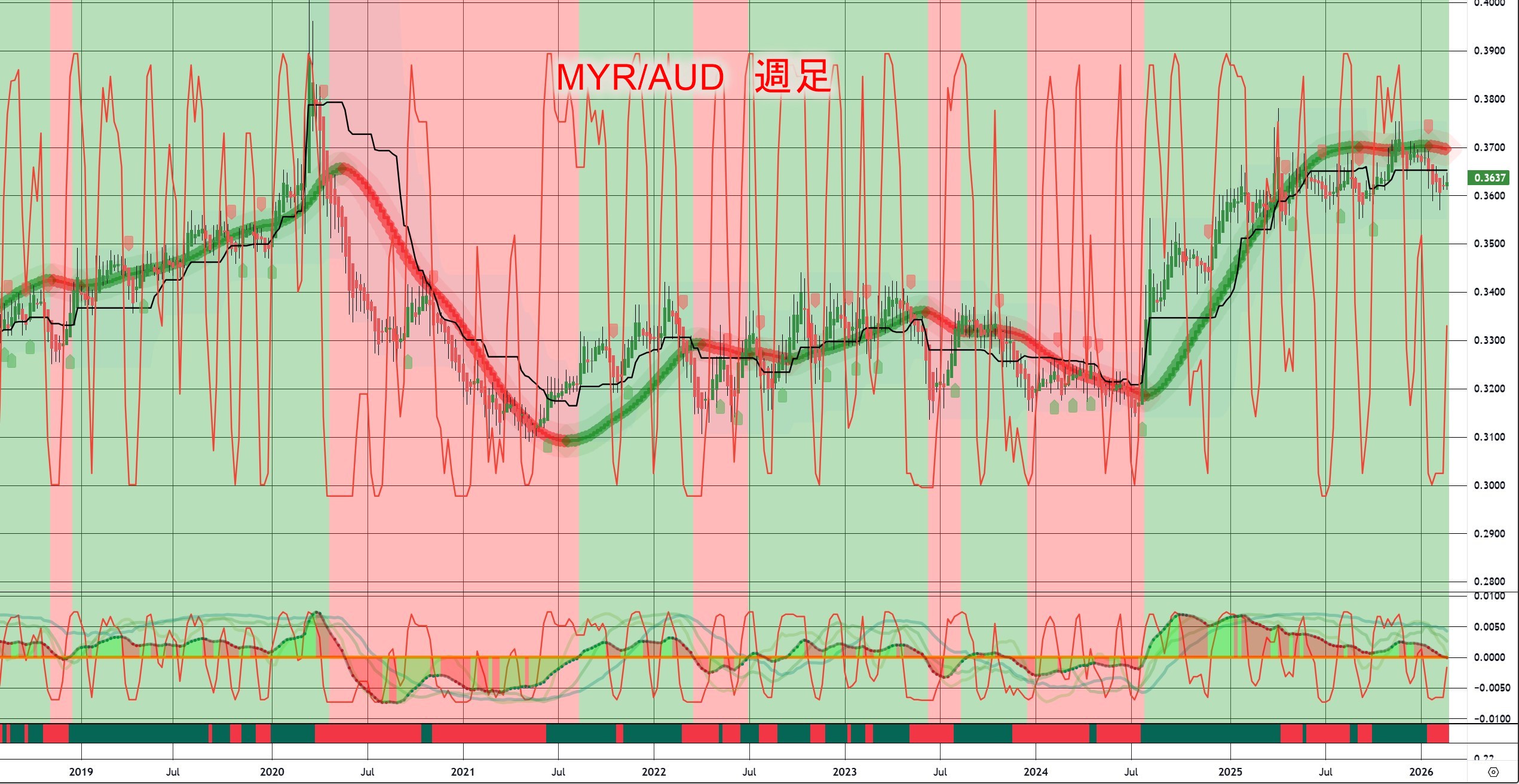 対オーストラリアドル 週足