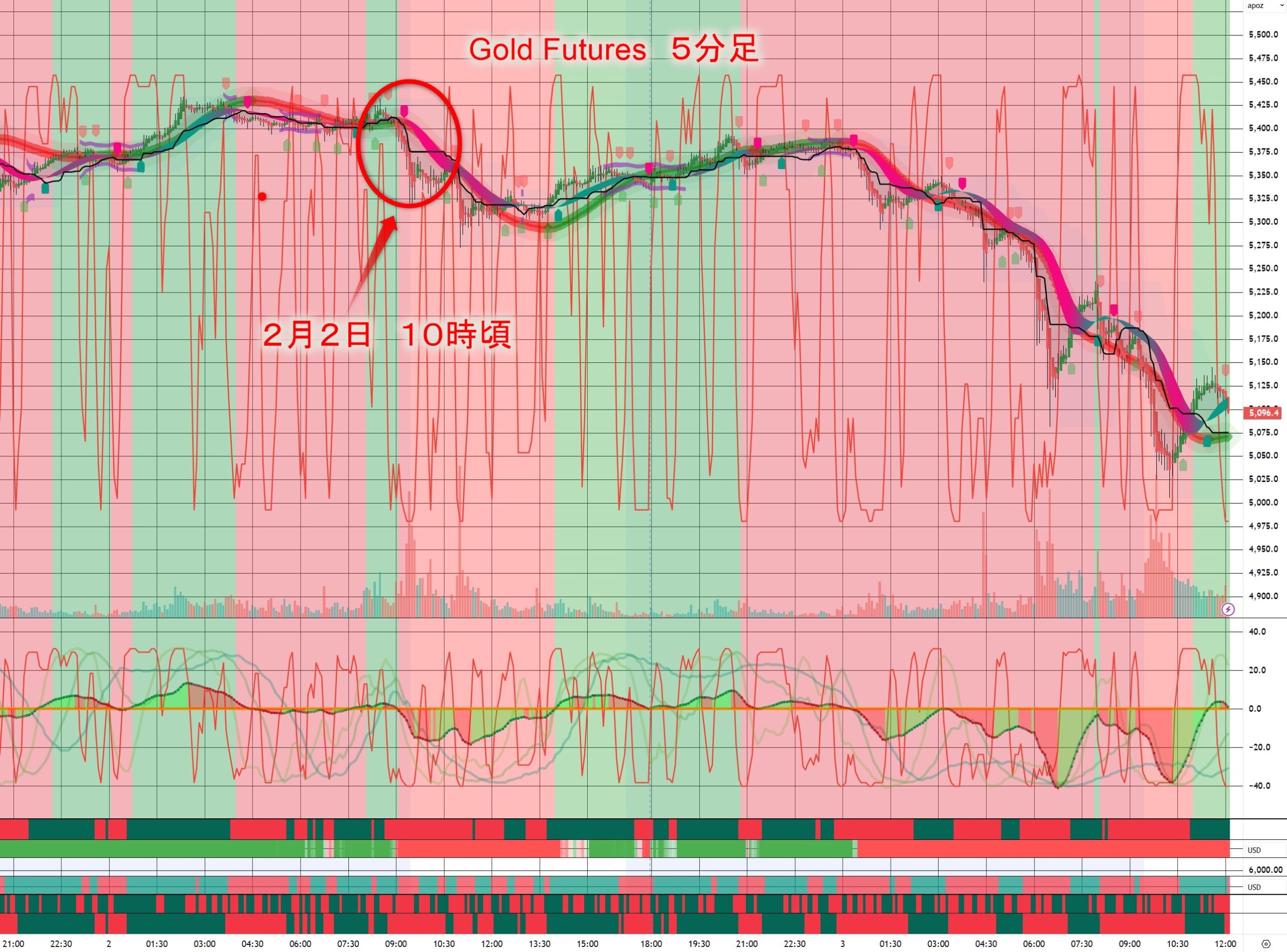 つまり、「これから戦争が本格化して、金(ゴールド)はね上がるだろう」という読みは大ハズレで、【戦況も荒れることなく、金(ゴールド)を含む市場の動きは様子見】みたいな動き。そして金(ゴールド)はね上がるどころか弱含みの動きになって、結局、その投稿をした2月2日の午前10時頃が【金(ゴールド)の高値圏】となってしまった。株式市場も大きな暴落はなく、ただし「ホルムズ海峡を封鎖する」というイラン側の発表もあり、実際に危険だからタンカーはホルムズ海峡を通過できない状態で、【石油の高騰】【流通】に問題が出ると大変なことになるので、「株式市場はダラダラと下落」という状態。