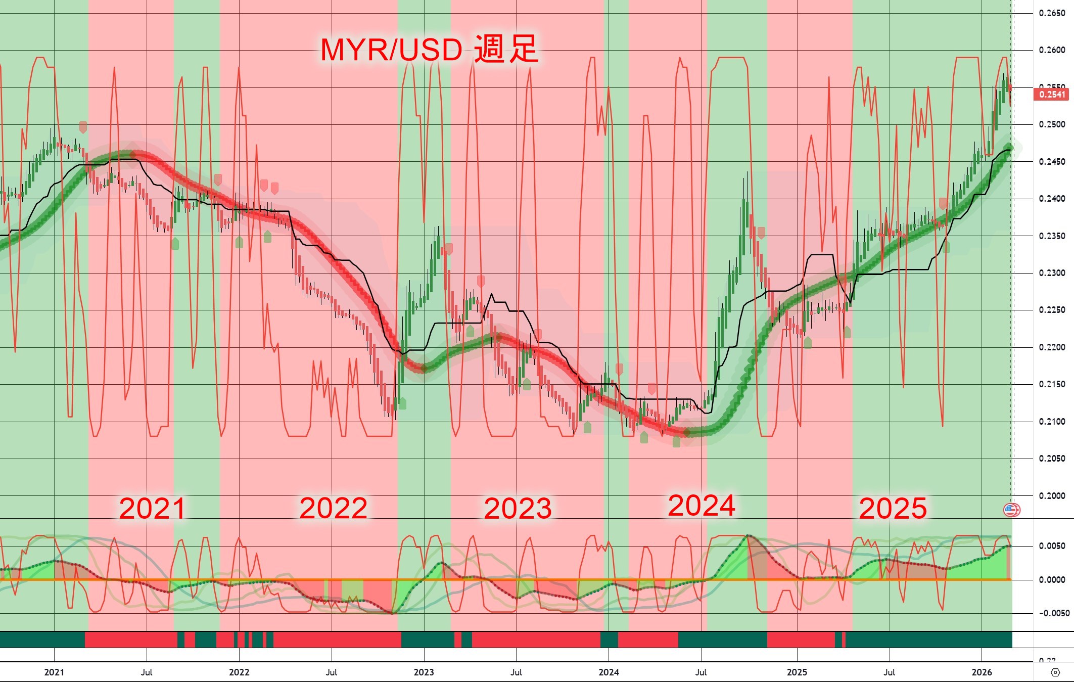 世界に通貨は山ほどあるけれど、マレーシアリンギットみたいに「なだらかで大きなうねり」で【方向性が見やすい通貨】って他にあるのかと思うくらい。
