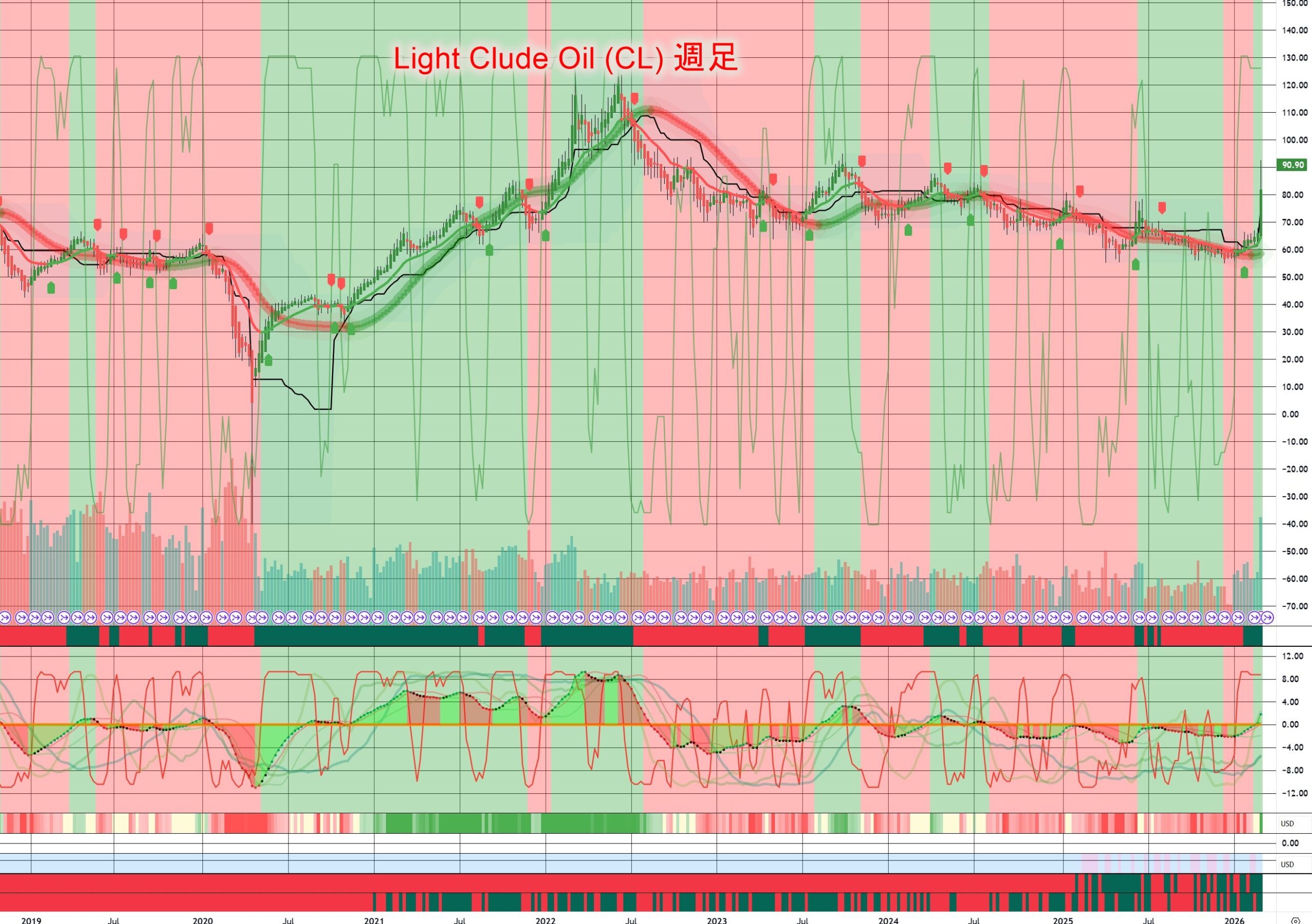 週足で見てみると、今が飛び抜けて高いわけじゃないし、かつて「高い時代はどうだったのか」を思い出してもなんだか私には「ピンとこない」んですよ。もしかするとそれは「世界有数の石油・天然ガスの産出国であるマレーシア」に住んでいるからかもしれない。ガソリンも「高いと思ったことは一度もない」し、石油価格、天然ガス価格の上昇は【マレーシアの歳入が増える】方向に動くから決して悪いことじゃない。この「産油国」「産油国ではない」見方ってかなりの差がある。