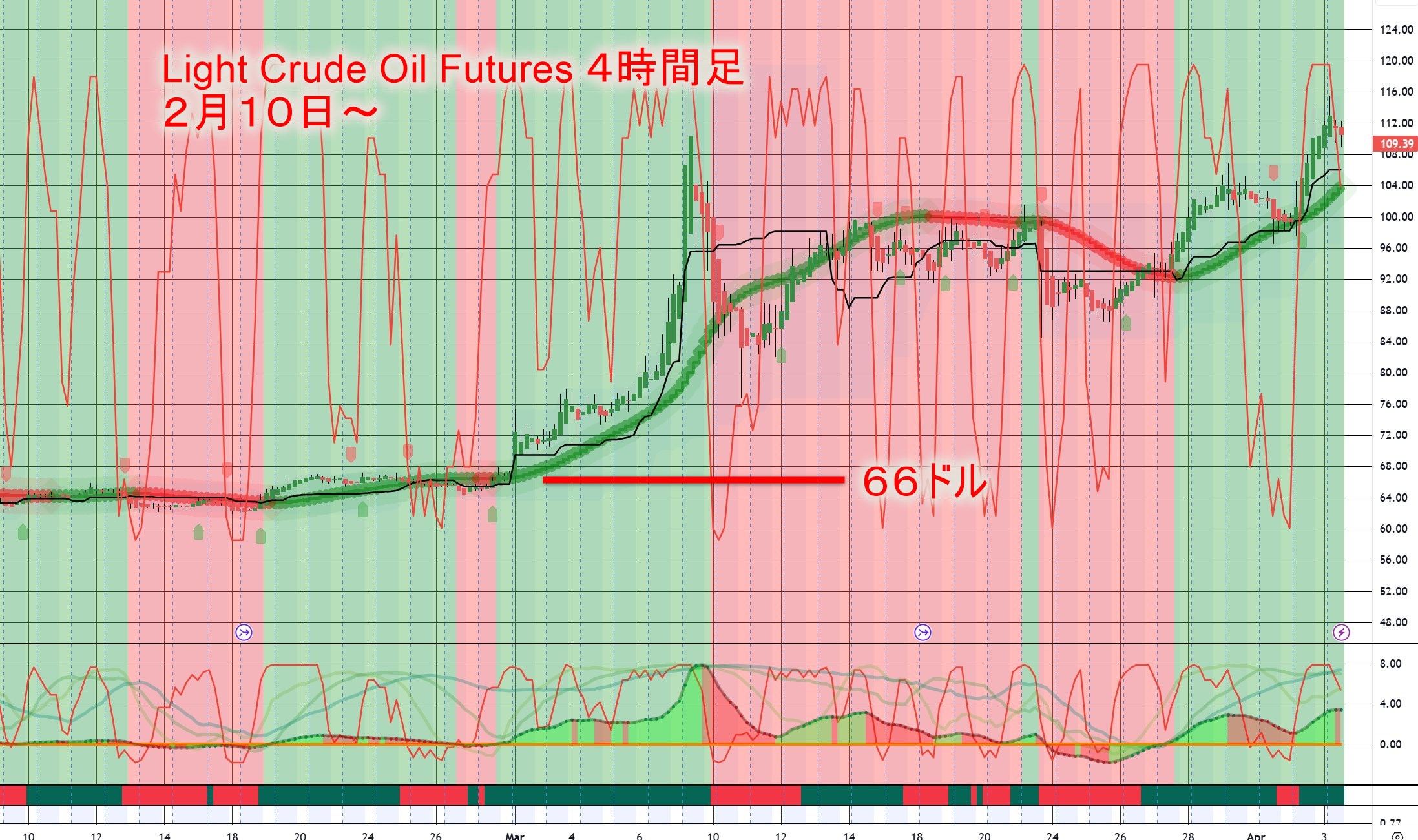 ただし、「今現在の価格」は【今の情勢】から判断した価格なわけで、戦争の進む方向によっては150ドルという未来もあるのかもわからない。