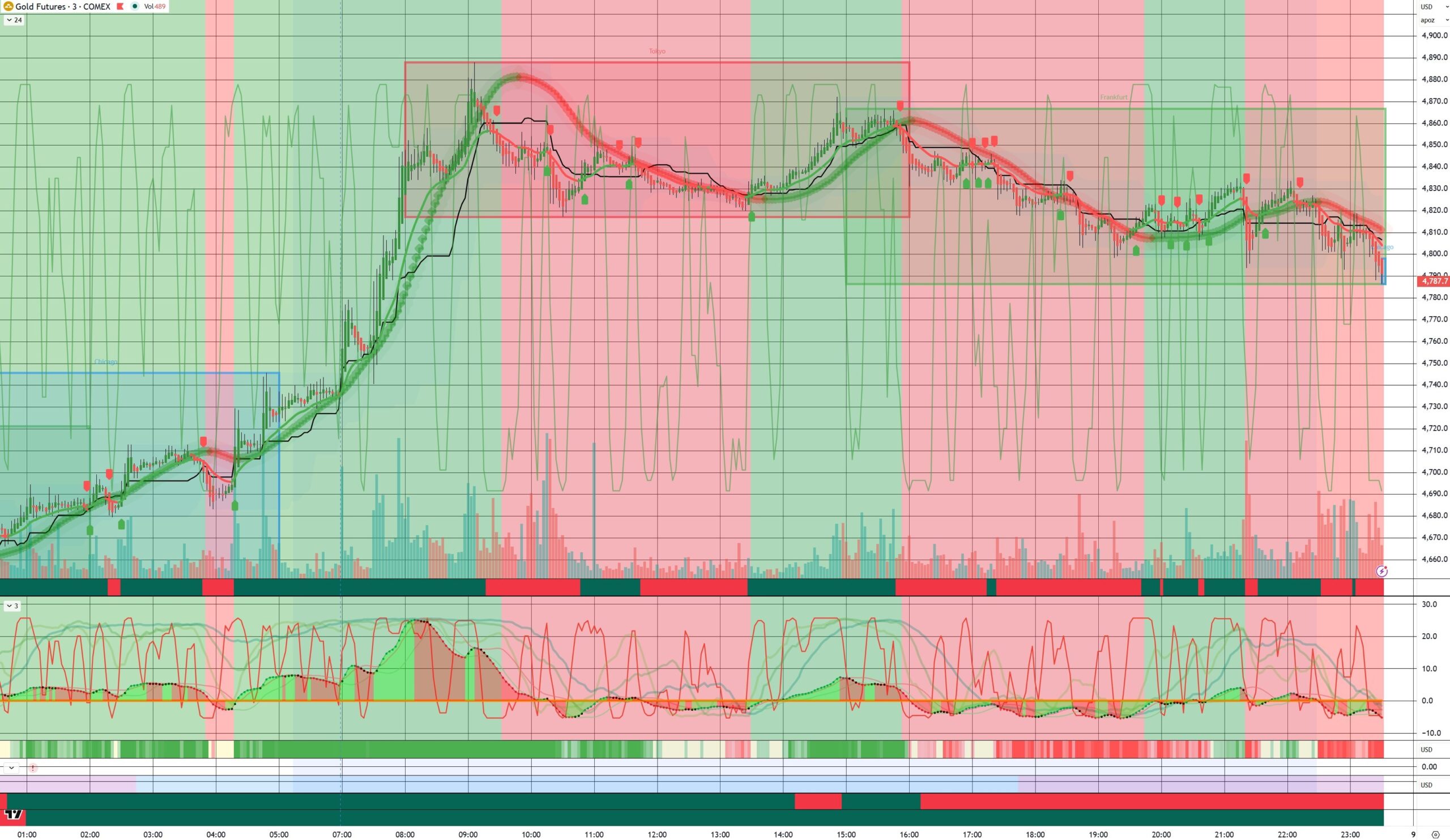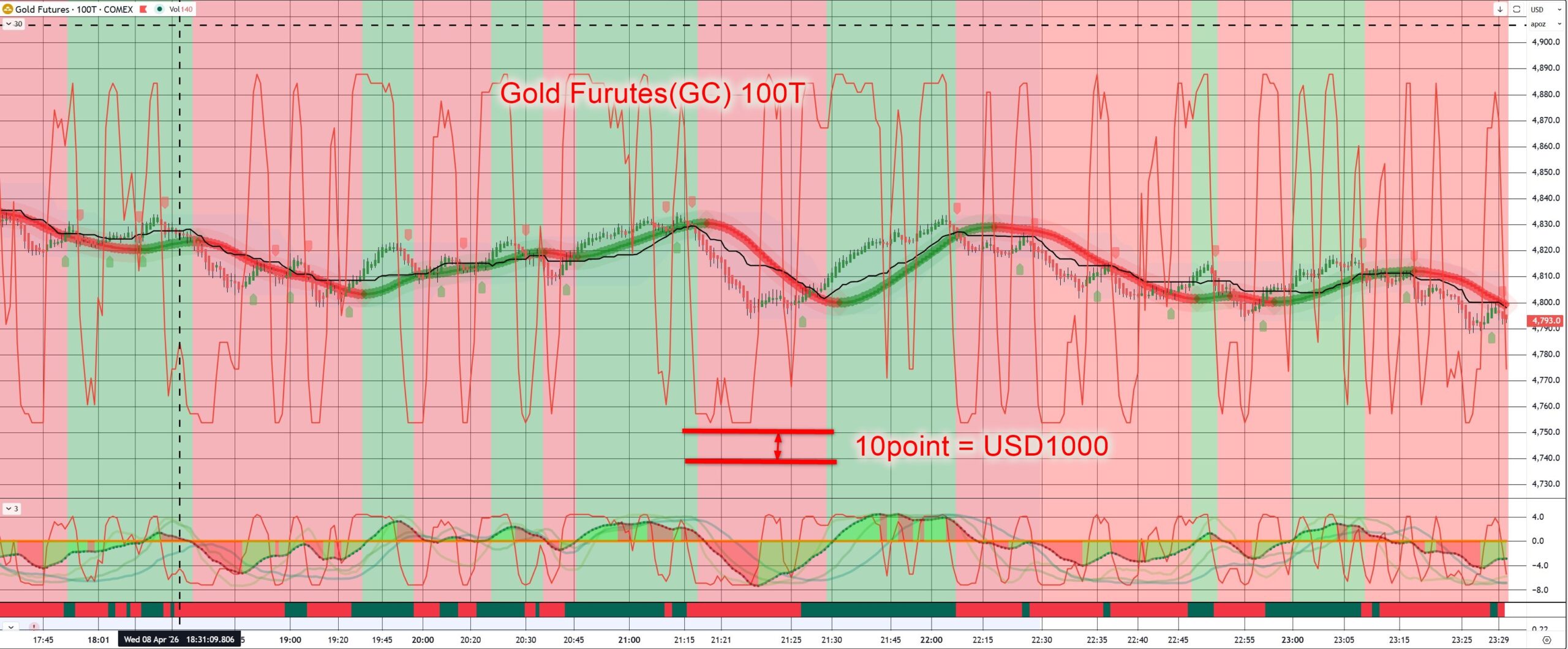 デイトレの方ですが、私の判断ではやっぱり「金(ゴールド)」の先物である「GC」が良い感じ。非常に「波に乗りやすい」と感じます。