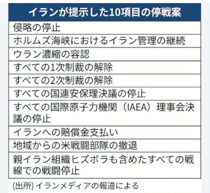 10項目の「条件」があるけれど、中を見たら「トランプが納得できる内容じゃない」じゃないですか。それもお互いにやりとりし、承諾した「公式文書」でもない。